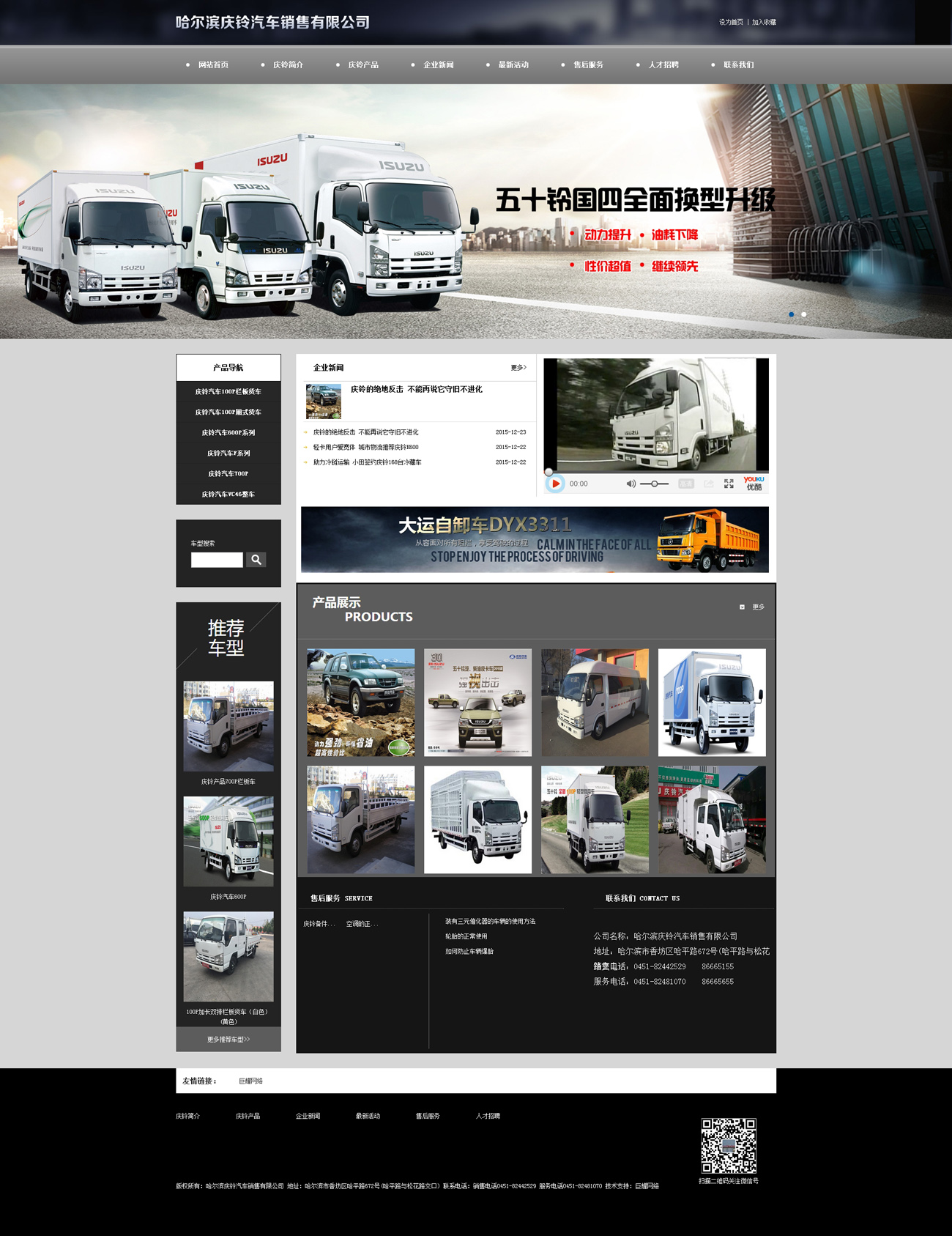 哈爾濱慶鈴汽車銷售有限公司是慶鈴汽車股份有限公司授權的黑龍江地區一級代理商,是集整車銷售、配件銷售、售後(hòu)服務、信息反饋四位一體的綜合性汽車銷售服務企業,專營五十鈴系列商務用車。哈爾濱慶鈴汽車銷售有限公司是慶鈴汽車股份有限公司授權的黑龍江地區一級代理商,是集整車銷售、配件銷售、售後(hòu)服務、信息反饋四位一體的綜合性汽車銷售服務企業,專營五十鈴系列商務用車。