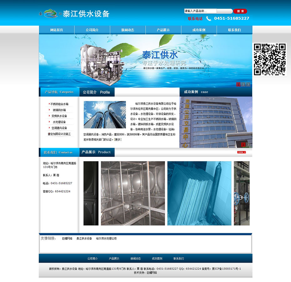 哈爾濱泰江供水設備有限公司位于哈爾濱市經(jīng)開(kāi)區南崗集中區,公司緻力于供水設備、水處理設備,環保設備的開(kāi)發(fā)、設計;專業加工生産不鏽鋼水箱、玻璃鋼水箱、鍍鋅鋼闆水箱,成(chéng)套變頻供水設備、各種(zhǒng)用途水泵、水處理設備;經(jīng)銷:空調通風設備、消防産品、建築材料、裝飾材料等。其産品符合國(guó)家質量和衛生标準并取得相關部門的認證。